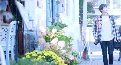 길가에 서서 나뭇잎 사진도 막 찍구 자기가 찍은 사진 보면서 살짝 웃음 짓고 그러던데