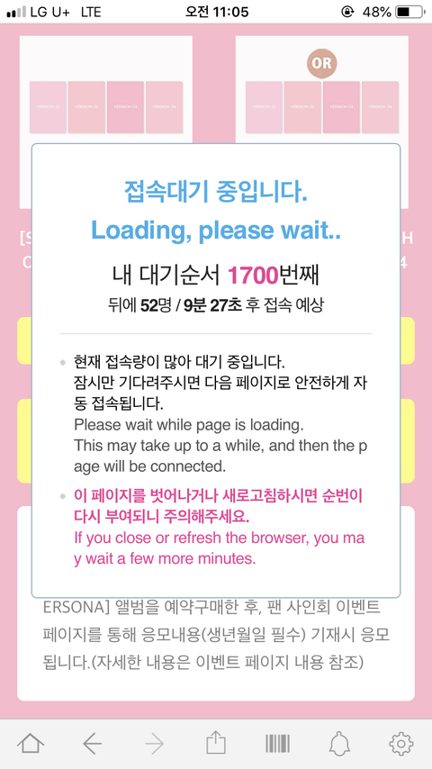 무슨 음반판매사이트를 대기를 하고 들어가냐ㅋㅋㅋㅋㅋㅋㅋㅋ대기는 이번이 처음이지?