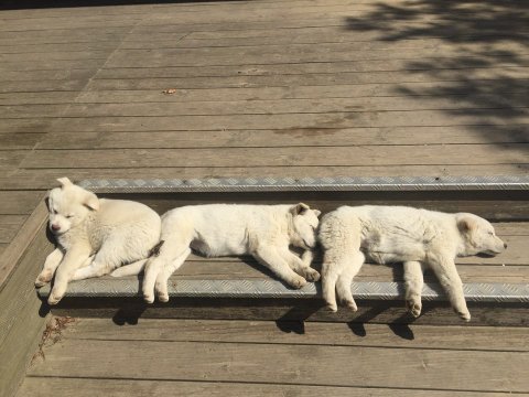 우리 작은 흰둥이는 총 6마리 낳았어요...그 중 2마리는 직원 친척분께 분양했구요...1마리는 인근 캠핑장 사장님께 분양했습니다....저희가 연말 준공예정인데요....더이상 분양이 안된다면 발령되는 다른 현장으로 데리고 가려고 합니다.