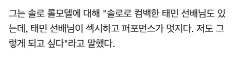 난 연예인이 꿈은 아니지만 태민처럼 되고싶은데. 뭔가 노력형╋천재형 같아서 동경하게됨