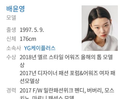 신현지 최소라 배윤영 같은 애들 다 YG임 모델 탑한다는 애들은 YG케이플러스 아니면 에스팀임