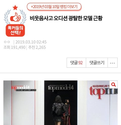 얼마전 톡선 간 탑모델마저