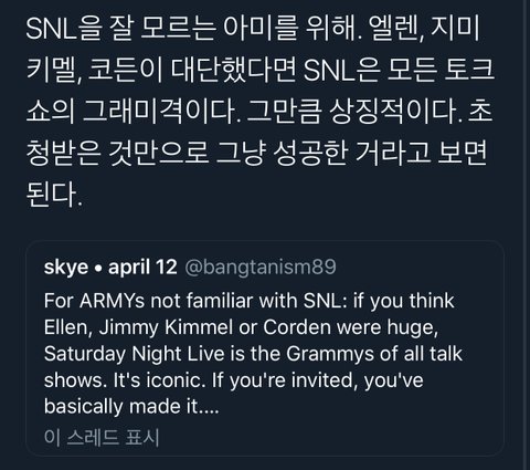 대박 미국 현지인이 말하는 토요일밤라이브의 의미ㅠㅠ