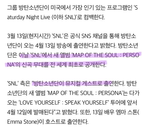 4월 13일 토요일밤에 신곡 최초무대를 하는 방탄이들(공식)