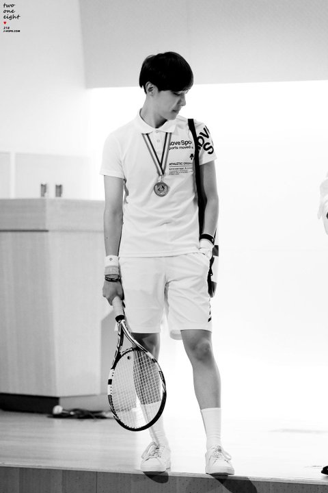 선생님이 테니스 하고 싶은 사람? 물어봤을 때 우연히 기지개를 펴고 있었는데 그걸 본 선생님이 하겠다는 걸로 착각해서 하게됐다곸ㅋㅋ(뭔가 제이홉 테니스 했다는거 의외다ㅎㅎㅎ)