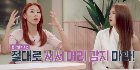 모델 한혜진이 머리는 절대로 서서 감지 말래