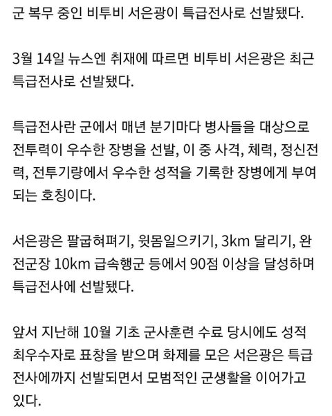 작년 8월에 현역으로 입대한 비투비 서은광 근황