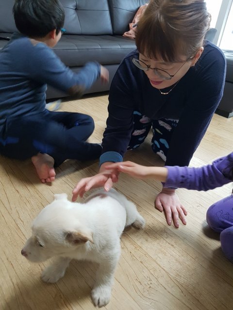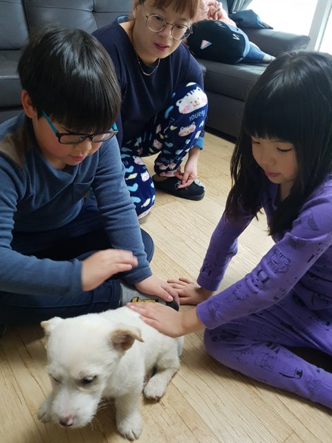 우리 둘리가 엄마 아빠 누나2 형아가 있는 다복한 가정으로 입양이 되었습니다