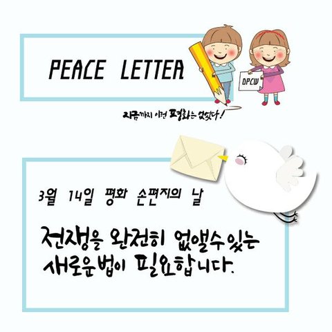 HWPL은 3월 14일 DPCW 공표 3주년을 기념하며 DPCW의 국제법제정을 촉구하는 편지쓰기운동을 시작하였습니다.