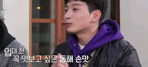 멤버들과 저녁을 먹으면서 입대 전 꼭 맛 보고 싶은 동해 손맛이라던 정진운