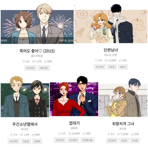 +) 일어나보니까 톡선이네 댓글보니까 별로인 게 많다고 하네ㅠ 너희들이 댓글에서 추천한 웹툰들도 다 재밌는 거긴 하지만 내 기준은 웹툰 잘 안 보는 애들을 위한 거였어...그래서 대중적인 웹툰도 썼던거고 아무튼 충고 고맙고 모두들 좋은 하루 보내자! 정리는 잘했는데 설명이 부족하다고 해서 추가할게