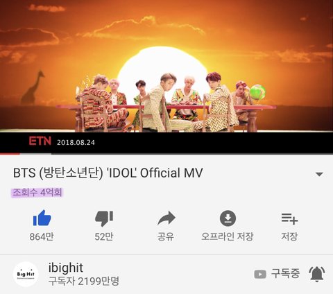 아이돌 4억뷰 돌파 축하해 !!!