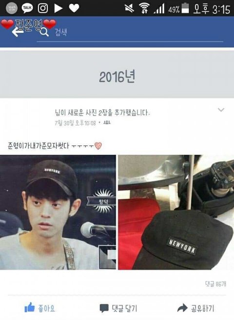 무려 2년전에 내가 준 모자를 완벽히 소화해준 정준영