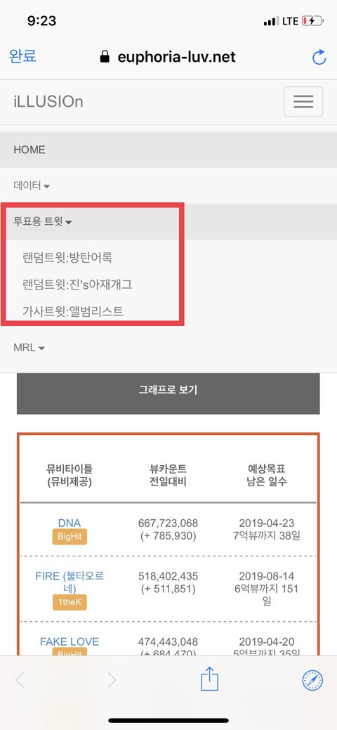 https://euphoria-luv.net/display/mvviewcount 위 링크 들어가서 아래 짤 빨간표시 순서대로 누르면 됨ㅇㅇ