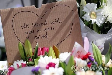 사건 현장인 이슬람사원 인근 도로에는 꽃과 연대의 메시지를 전하는 주민들의 발길이 끊이지 않고 있다.