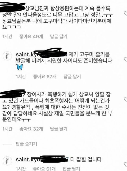 피해자 김상교씨 인스타와 댓글 상황