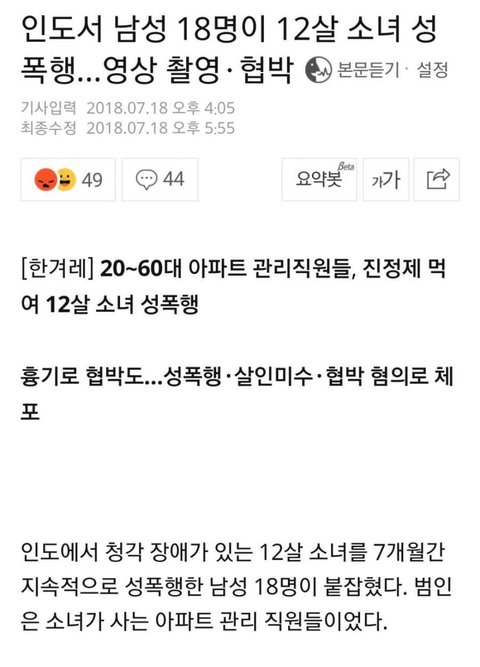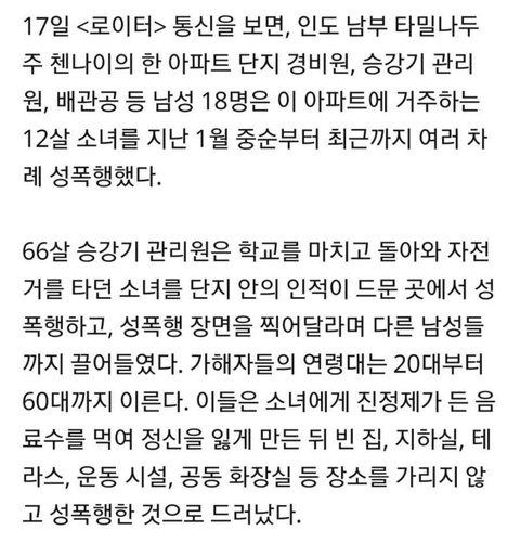 놀랄거 없다. 우리나라에도 비슷한일 있었음. 그때도 장애소녀였고 마을 남자들 쉬쉬하며 돌아가며 강간함.
