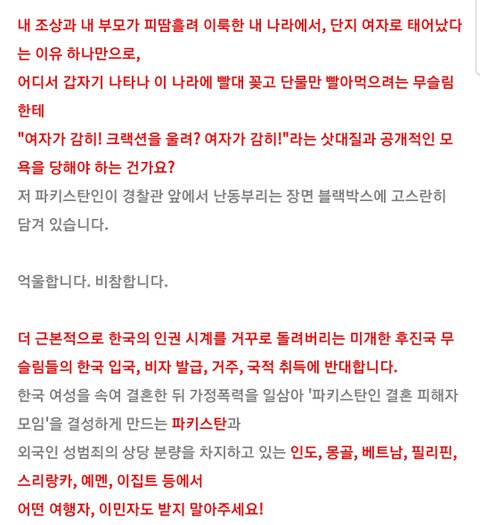 방탈 죄송합니다! [무슬림] [청와대 국민청원] 한국 여성을 정신적으로 살해한 파키스탄인 처벌해주세요.