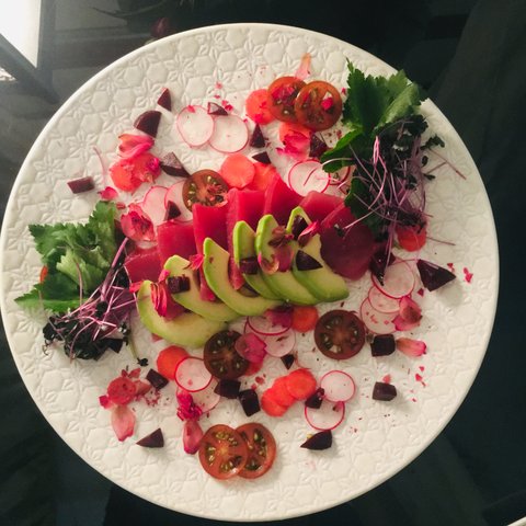 좋아하는 야채와 드라이 후르츠, 참치, 아보카도에