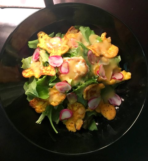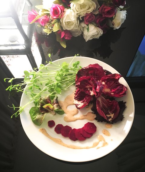 직접 기른 치커리와 완두콩 싹을 길러 샐러드 했다.
