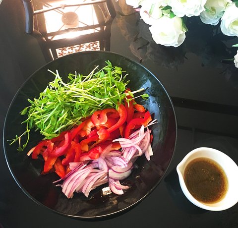 완두콩싹,파프리카, 보라양파