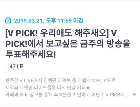 자아 V픽 투표가 돌아왔어요☺ 투표합시다! https://m.vlive.tv/vote/118 ☜클릭 https://m.vlive.tv/vote/118