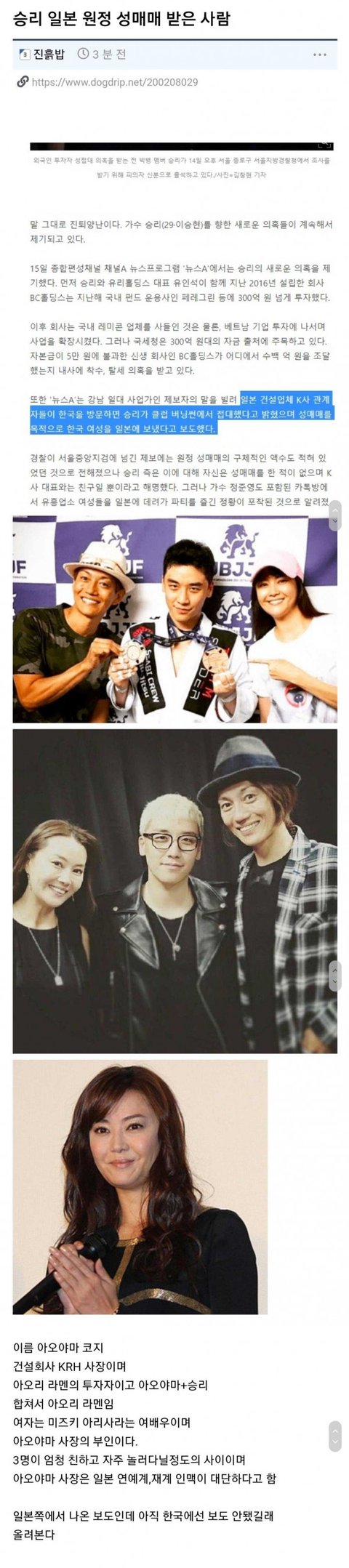 승리한테 일본 원정 성매매 받은 사람