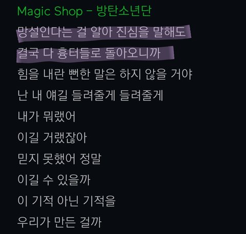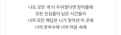 그러니까 걱정 하지마 라고 진짜 '말'해주는 것 같은 구절이라서 항상 저 부분엔 울컥함!