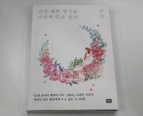 가장 예쁜 생각을 너에게 주고 싶다라는 책 로맨스는 별책부록에 나왔던 책이라 읽어보고 싶어서 보는데 진짜 감정이입되는거 있지..나태주시인이 딸을 키우면서 느낀 감정을 표현한 시집이라고 하는데몰입해서 보니까 진짜 감정이입되더라나 이렇게 감성 터진적 처음이야.. 그것도 낮에.. 감성터지고싶으면 진짜 꼭읽어봐! 게다가 일러스트도 예뻐 적극추천해