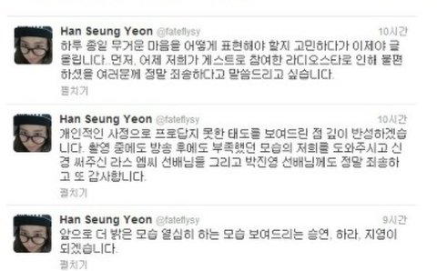 결국 한승연은 SNS에 사과글을 올림