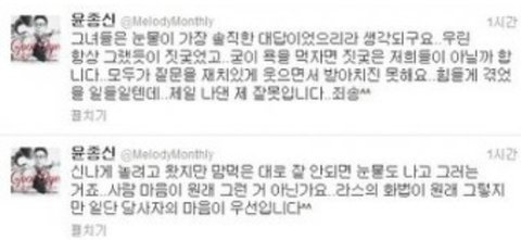 윤종신도 자기 SNS에 사과글을 올림