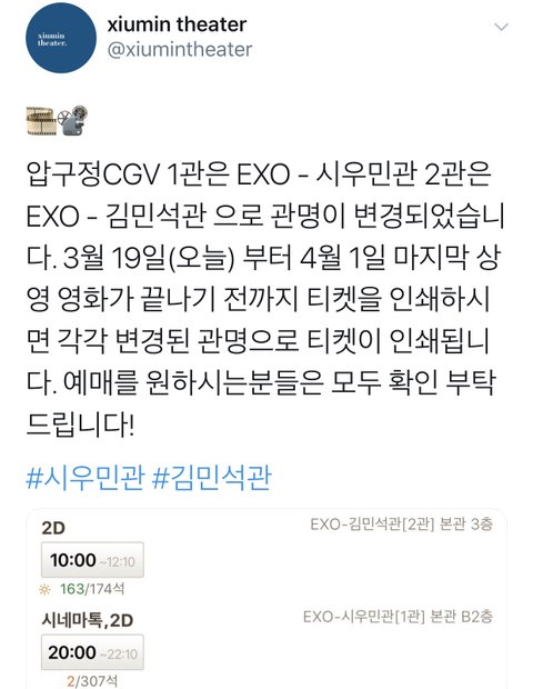 압구정 CGV에 시우민관 김민석관 랩핑 대박이다
