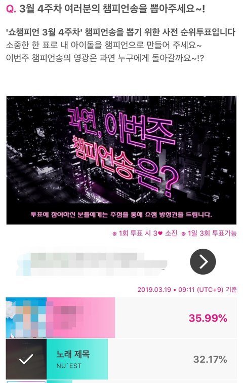 ㅇㅊ 1위하고있고 진이도 표차이 얼마안나 힘내죠!