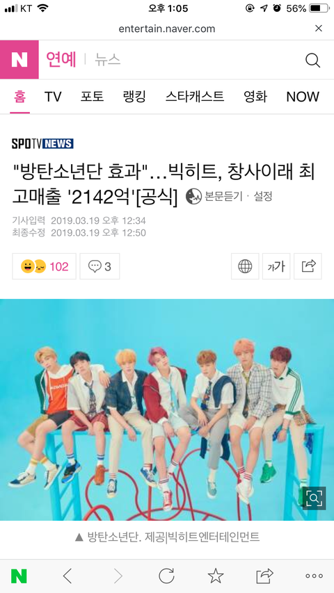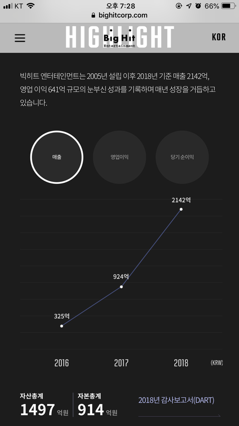 물론 소속가수도 있지만 거의 저기 매출의 대부분을 방탄이 책임지고있는 사실을 모두가 알겠지!! 와 대단하다는 말뿐..올해 빅히트에서 후배그룹 TXT 를 데뷔시키고 방탄소년단도 곧 컴백하구.. 신인그룹만 잘 자리잡는다면 곧 상장하겠네.. 이미 잘 자리잡는 듯 하지만! 도대체 약 이천억이면 얼마야..? 대박이네 올해 더 잘되겠네ㄷㄷ