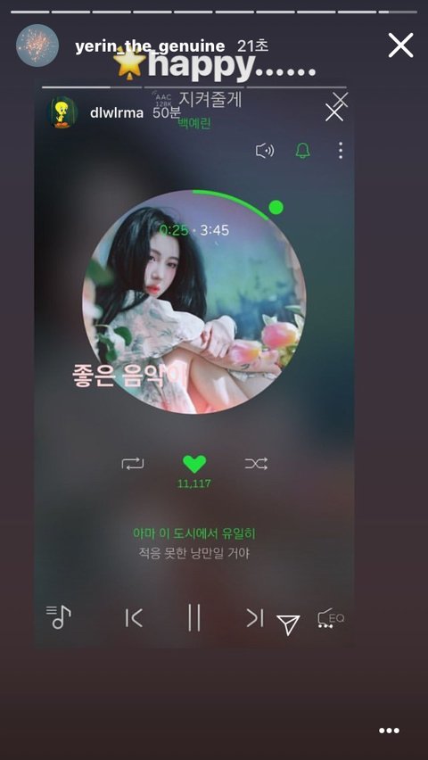 예린이 아이유 말고도 노래 언급하신 분들 스토리에 올리는데 보기좋다 ..