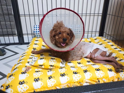아이의 뒷 다리 2군데가 쓸개골 탈구가