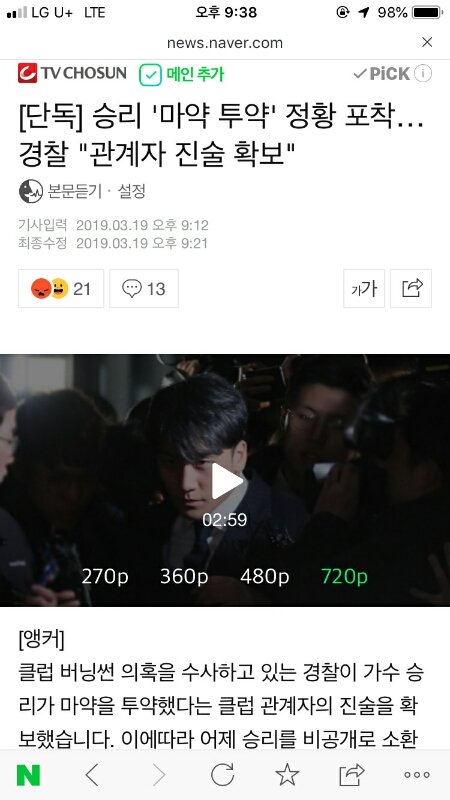 속보) 승리 마약한거 맞대