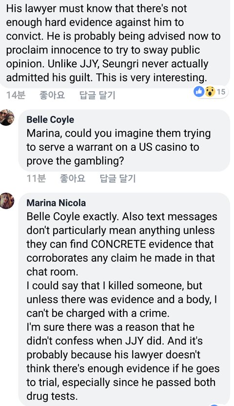 승리변호사가 보기에 지금 법적으로 정황증거만 많고 빼박증거가 없다고 보는거임. 그래서 정준영과달리 승리는 계속 무고하다 주장하는거. 지금까지 승리는 한번도 혐의를 인정한 적이 없음.