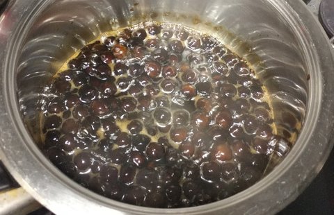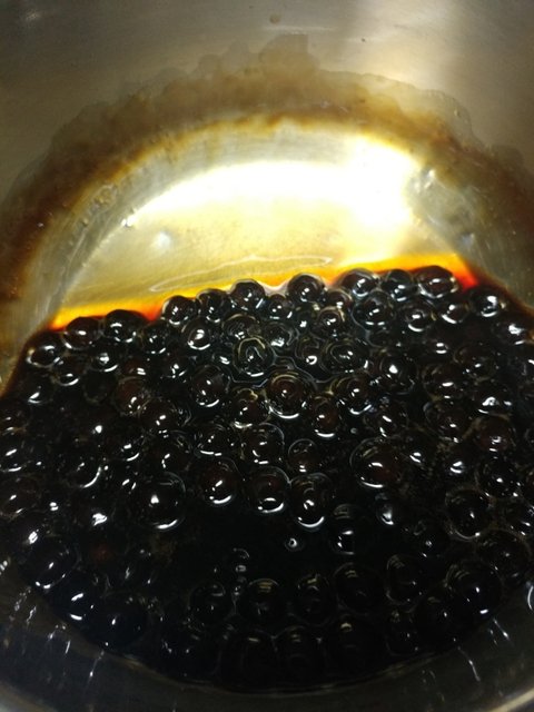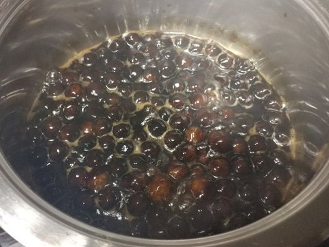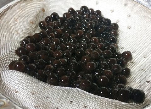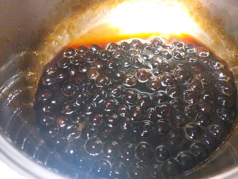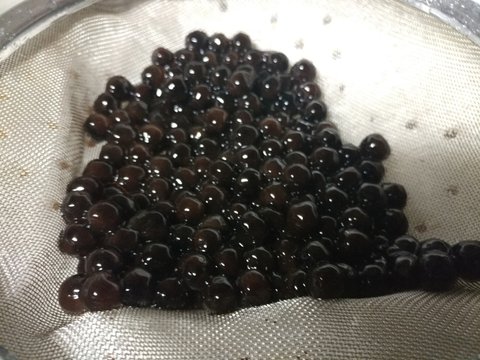 사진은 찬물에 헹궈서 쫀쫀해진 타피오카펄임. 영롱함... 흑진주같음