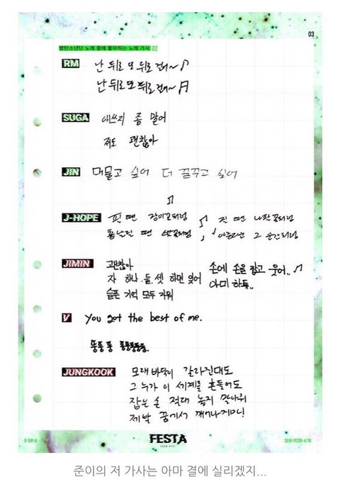 저때 올라온 저 짤에서 남준이가 썼던