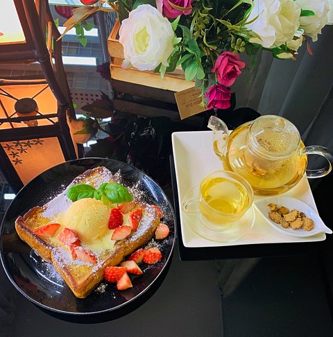 직접 건조하고 볶아낸 우엉차에 달콤한 프렌치 토스트를 했다. 달달하게...