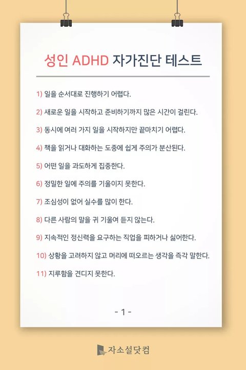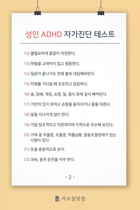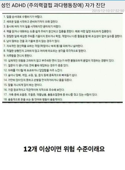 그래서 이 테스트를 해봤는데 12개 이상이면 전문의와 상담해봐야 한다고 했는데