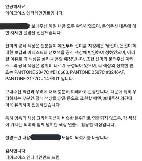 보다시피 색 번호만 다르지 3가지 색이 모두 겹침 ㅇㅇ 그래서 일어난 논란에 소속사의 피드백이 올라왔는데