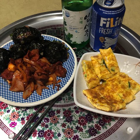 집에서 주먹밥이랑 계란말이 만들어서