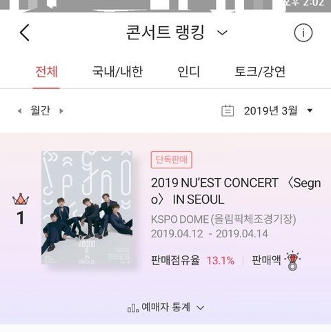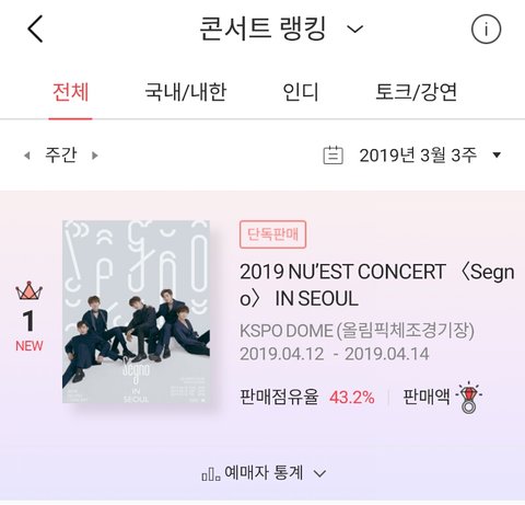 잠이 안와서 표 잘 있는지 확인하러 들어갔다가 일간/주간 다 1등한거 보고 찍어서 가져와따☺ 새삼 우리애들 티켓파워가 ㅎㅎ