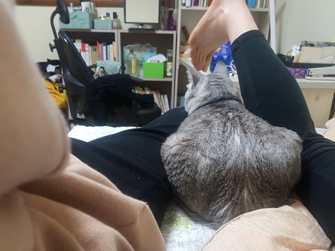 여전히 애교쟁이, 질투쟁이라 우리 가족 중심엔 지가 닜어야 돼요ㅋㅋㅋ 여동생이랑 침대에 엎드려서 수다 좀 떨었더니 조심스럽게 자리잡는 우리집 뚱땡이...