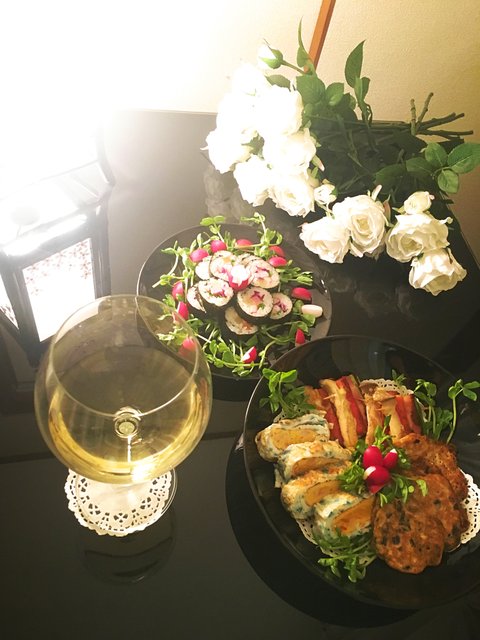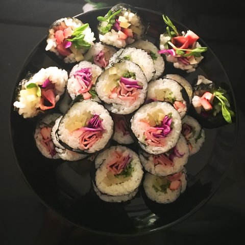 샐러드를 못먹는 대신 김밥에 야채를 생으로 바꾸고 베이컨 태우지 않게 구워 휴일에 소풍 기분을 내보기도 한다.