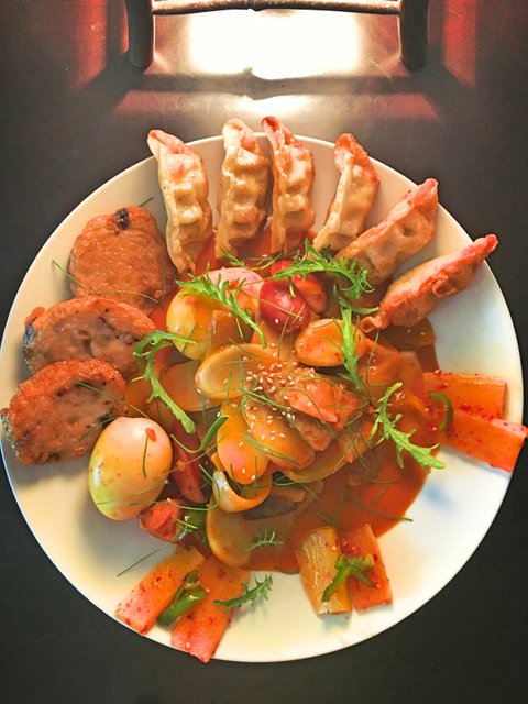 한국 물품 주문할 때 떡국이 먹고 싶어 들여놓았던 것을 떡볶이가 생각나 따라해 보느라 만두도 튀겨보고 계란도 삶았다. 떡볶이 국물에 계란을 부셔 먹는것을 좋아해서.