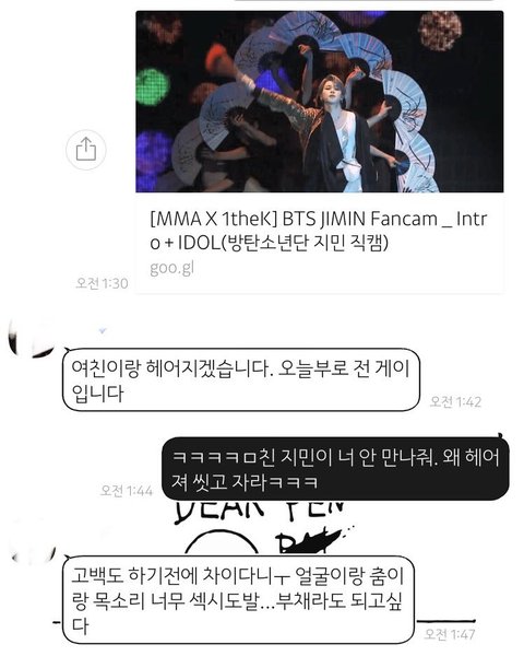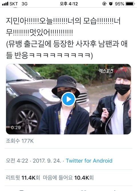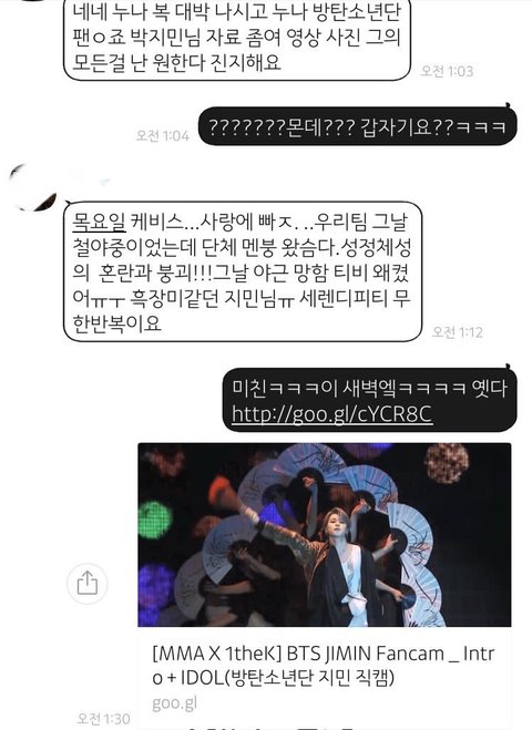 음악방송 출연길에도 남팬이 졸라 우렁차게 지민 불러대서 애들 다 빵터지고 지민이 부끄러워하는 영상도 있는데 동영상 첨부 못해서 사진으로 대신함