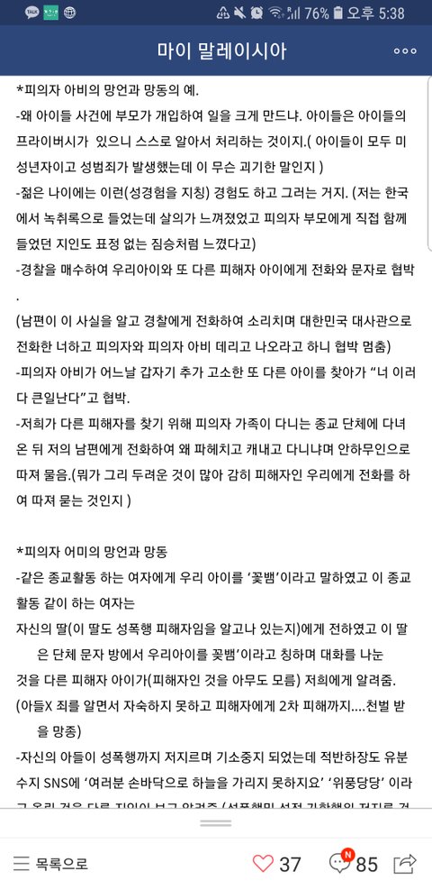 피해자는 1년 넘게 학교도 못다니고 정신과 치료를 받는데.. 피의자는 이곳에서 3만교민은 물론이고 현지인들도 거의 다 아는 거대그룹 아들이며.. 무엇보다 매일 그 회사에서 유통하는 한국물건들을 현지인,교민 할것 없이 이용할 수밖에 없는 곳이여서 그런지 너무 뻔뻔한 그들의 행동에 피해사실을 이곳까지 알리고 싶었던 큰 이유입니다.
